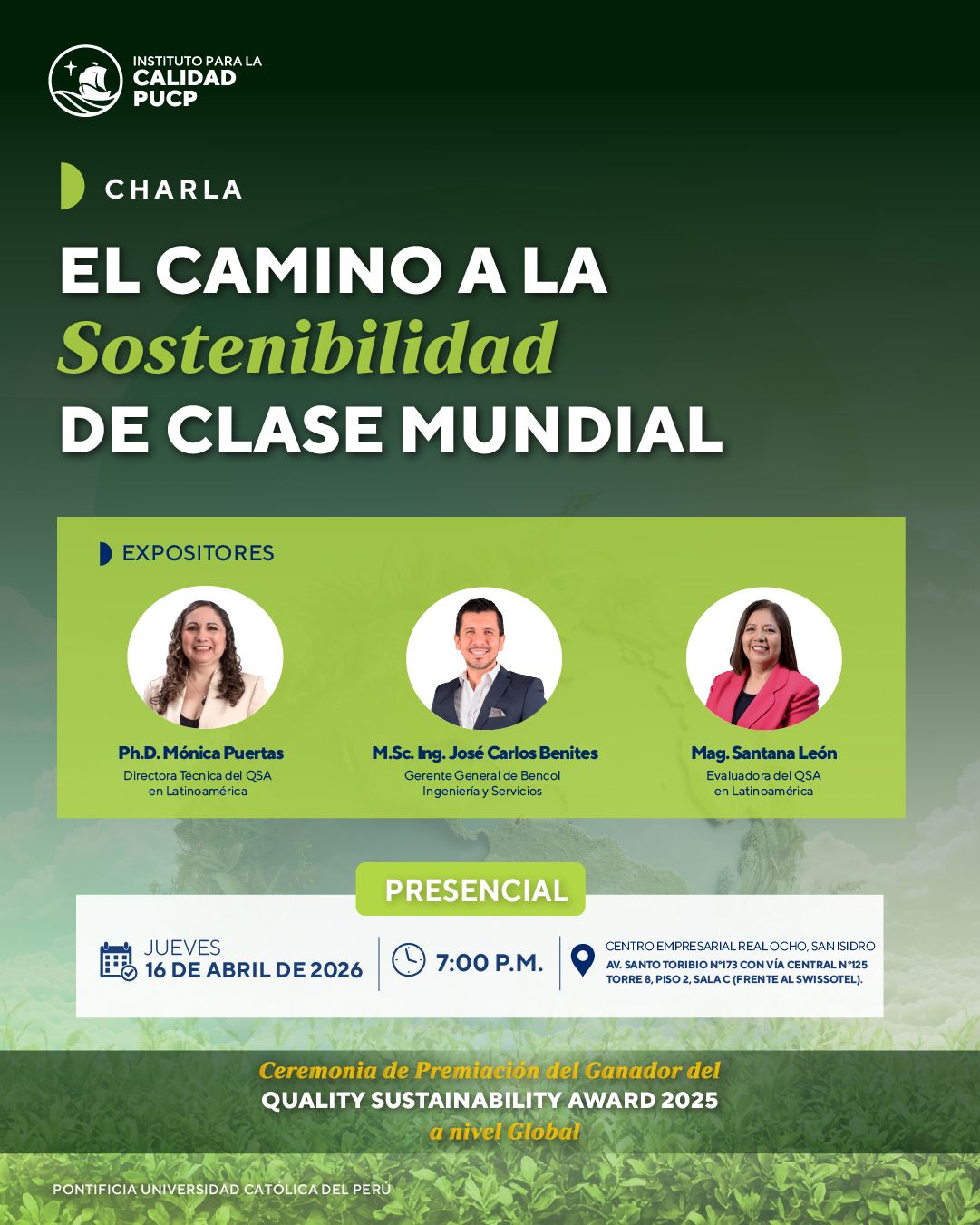 Participa en la charla presencial y descubre cómo implementar herramientas y metodologías de calidad que permitan obtener resultados medibles y alineados con los Objetivos de Desarrollo Sostenible (ODS). Además, seremos parte del reconocimiento y celebración del equipo ganador de la competencia internacional Quality Sustainability Award (QSA), destacando sus logros. 2025