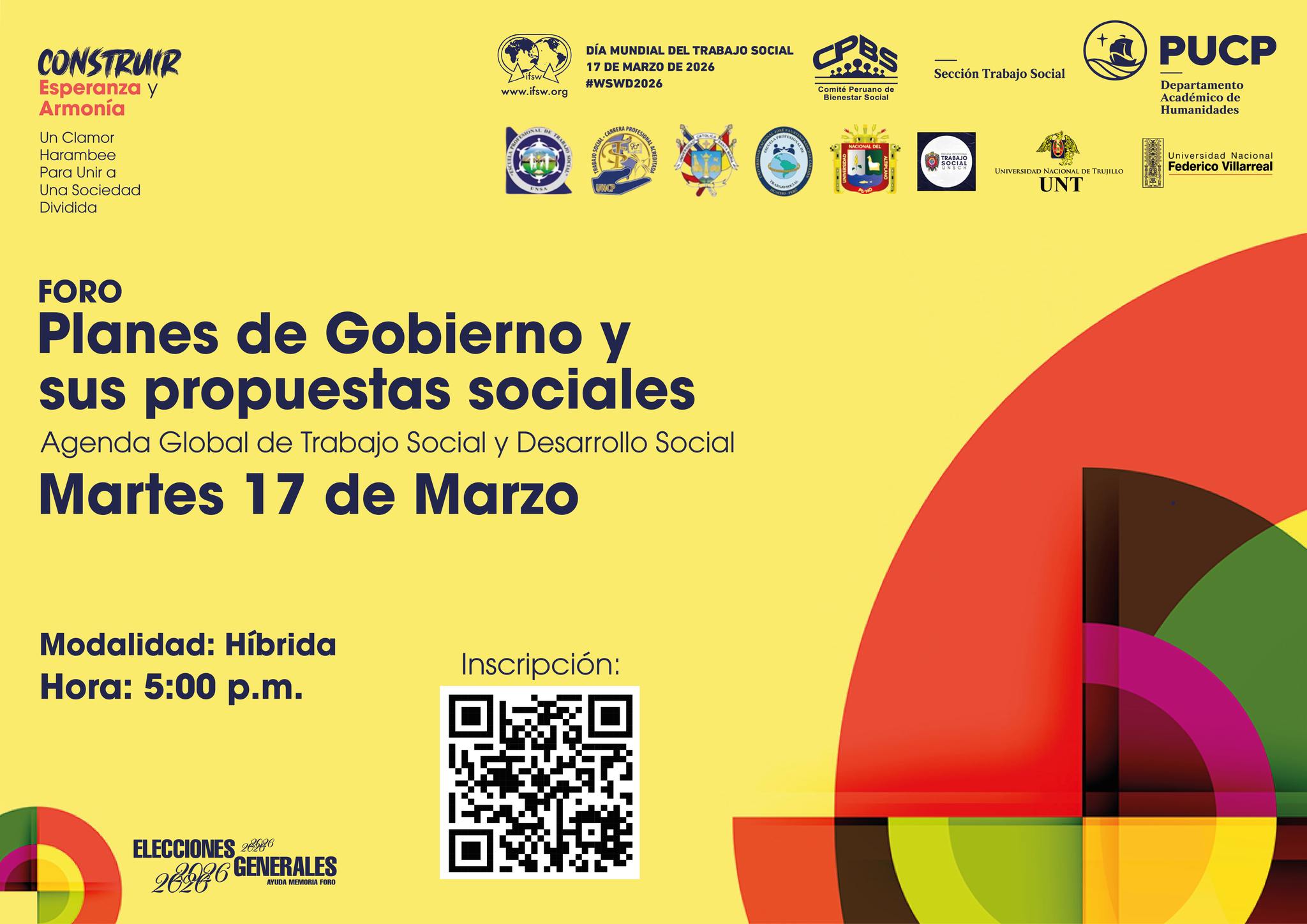 El foro “Planes de Gobierno y sus propuestas sociales en el marco de la Agenda Global de Trabajo Social y Desarrollo Social: Elecciones Generales 2026” propone una lectura crítica, rigurosa y técnicamente fundamentada de los planes de gobierno que marcarán el rumbo del país en los próximos años.